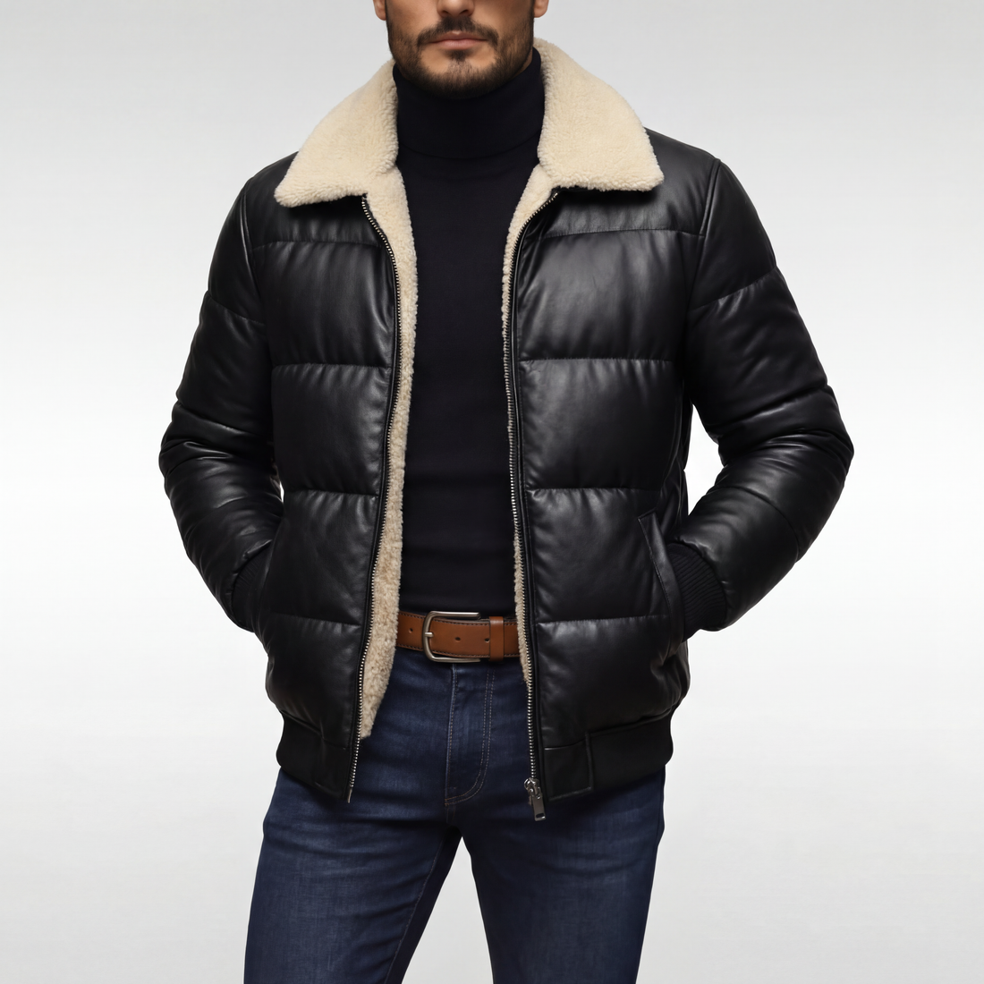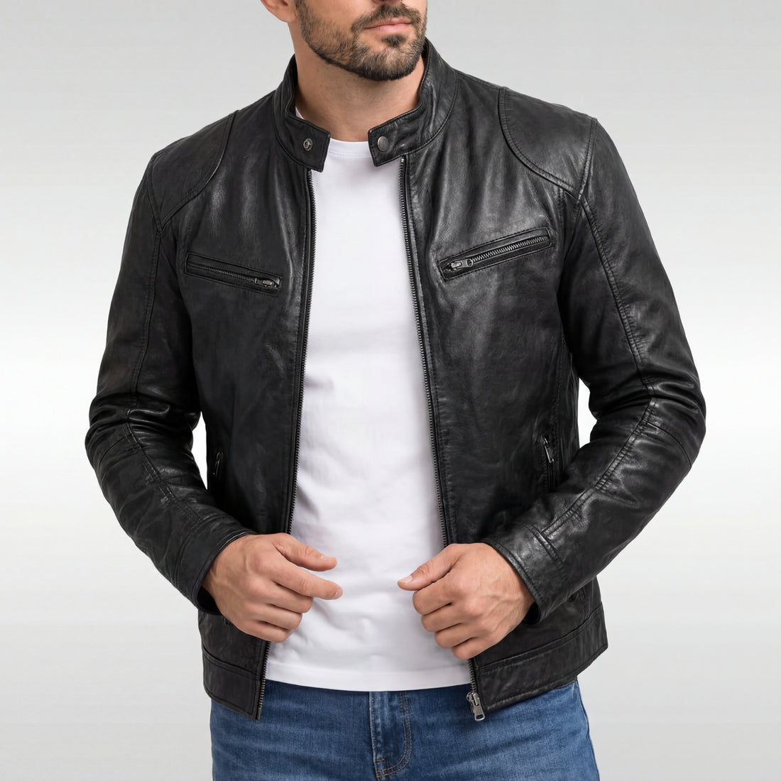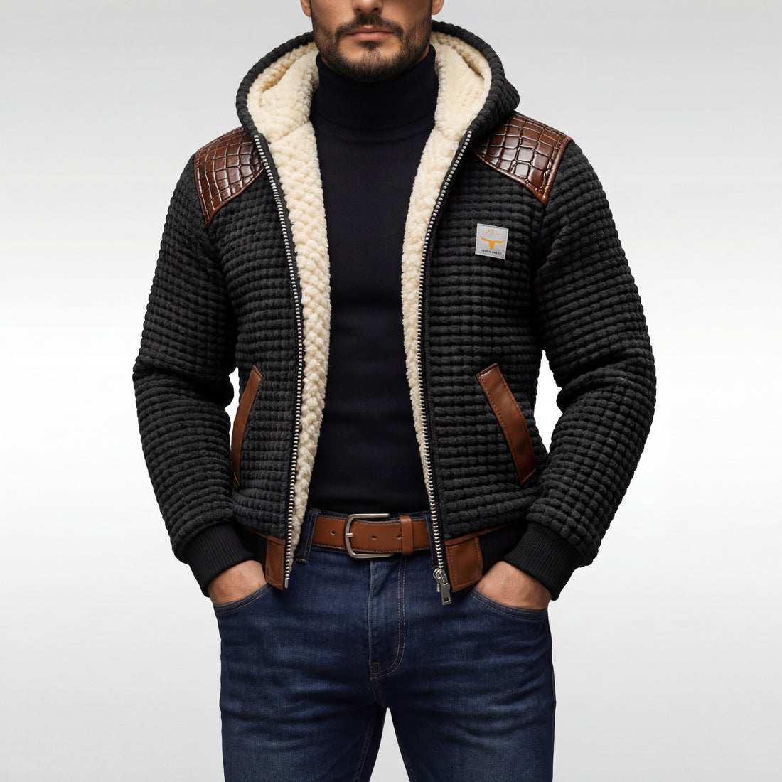 Álvaro | Chaqueta texturizada con acabados de cuero sintético