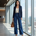 Pantalón con tiro alto y pierna ancha que estiliza la figura y alarga visualmente las piernas. Diseño de pierna ancha, ajuste en cintura y caída fluida para un look moderno y cómodo.